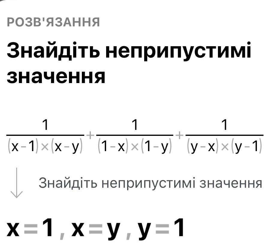 доведіть що при всіх доступних занчень змінних вираз тотожно дорівнює нулю 1/(m-1)(m-n)+1/(1-m)(1-n)+1/(n-m)(n-1)