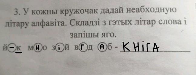У кожны кружочек дадай неабходную літару алфавіта. Складзі з гэтых літар слова і запішы яго.
