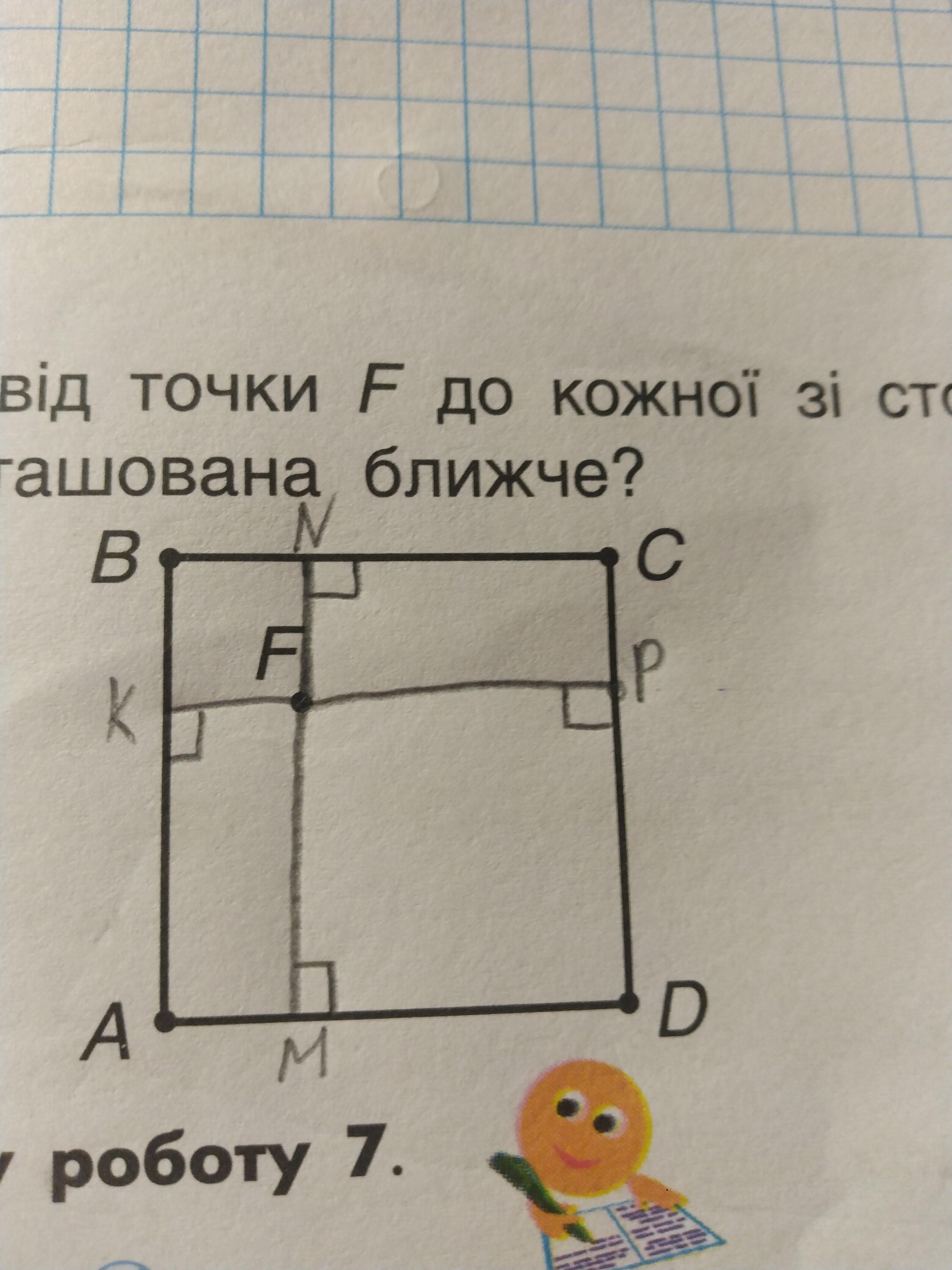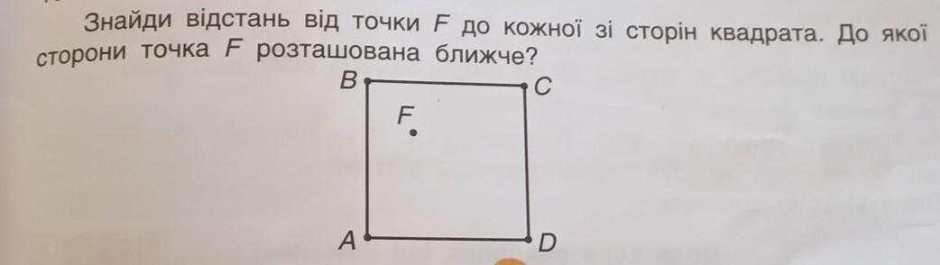 10. Виконан Знайди відстань від точки F до кожної зі сторiн квадрата. До якої сторони точка F розташована ближче? в с