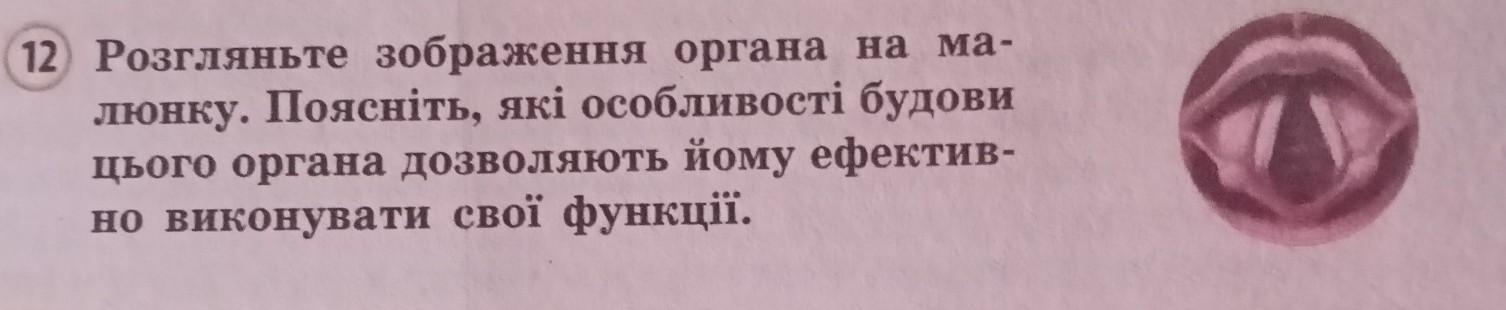 12)Розгляньте зображення органа на малюнку. Поясніть, які особливості будови цього органа дозволяють йому ефективно виконувати свої функції.(на фото)