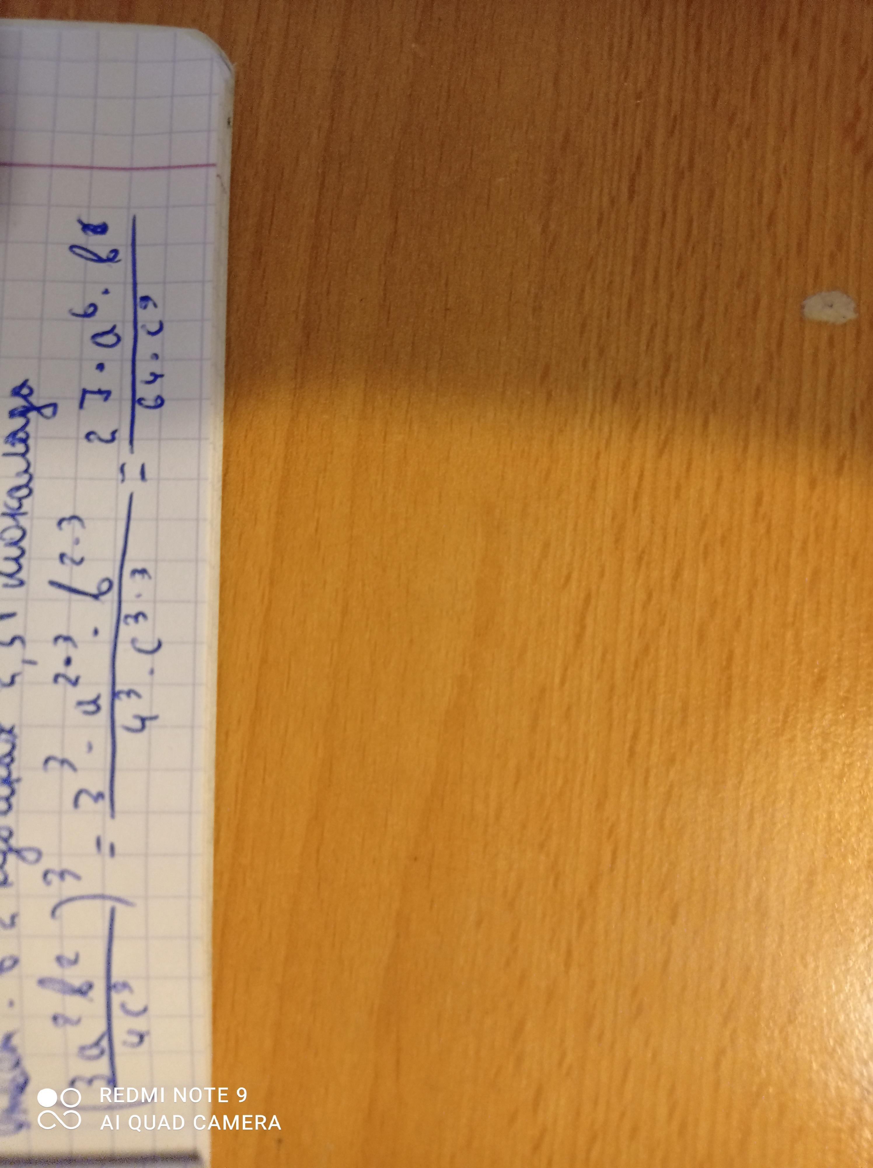 (3а²b²/4c³)³=3³a⁶b⁶/4³c⁹=27a⁶b⁶/64c⁹