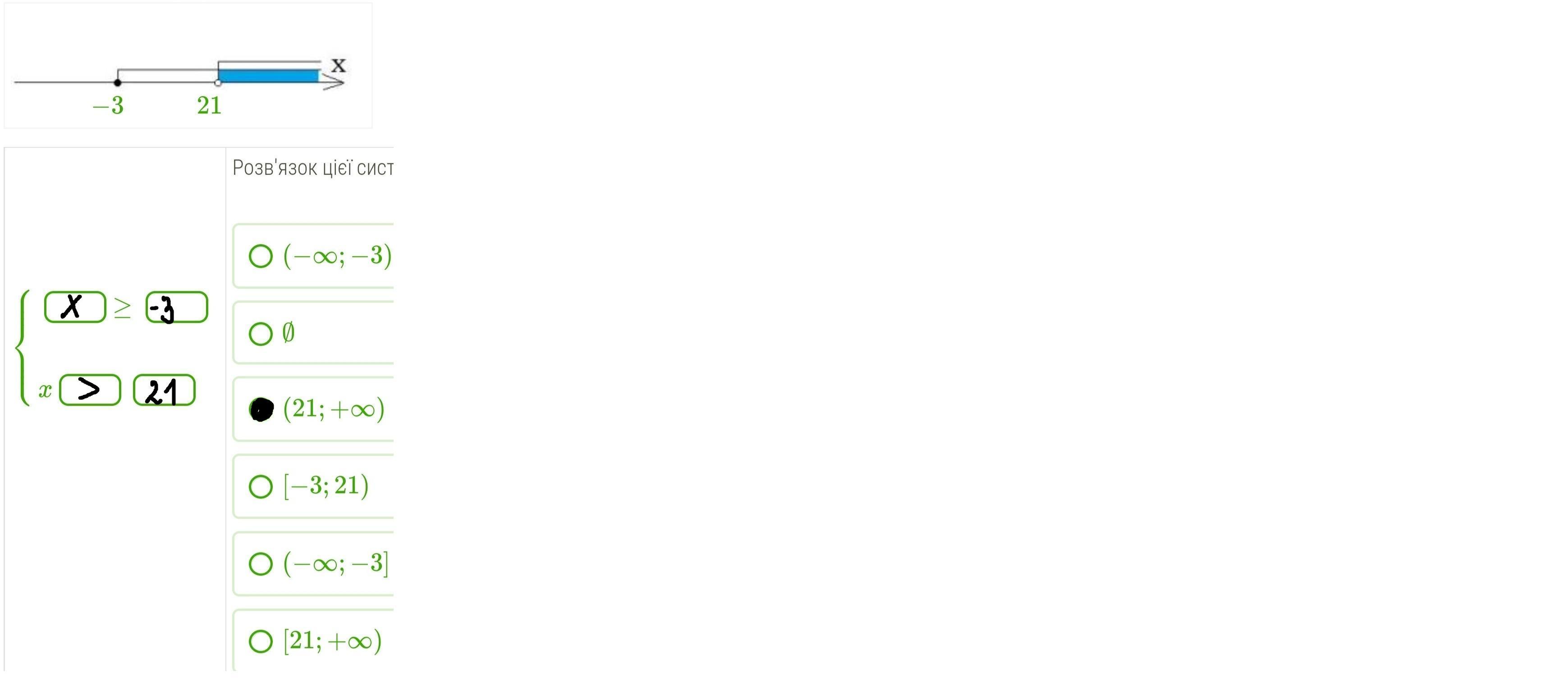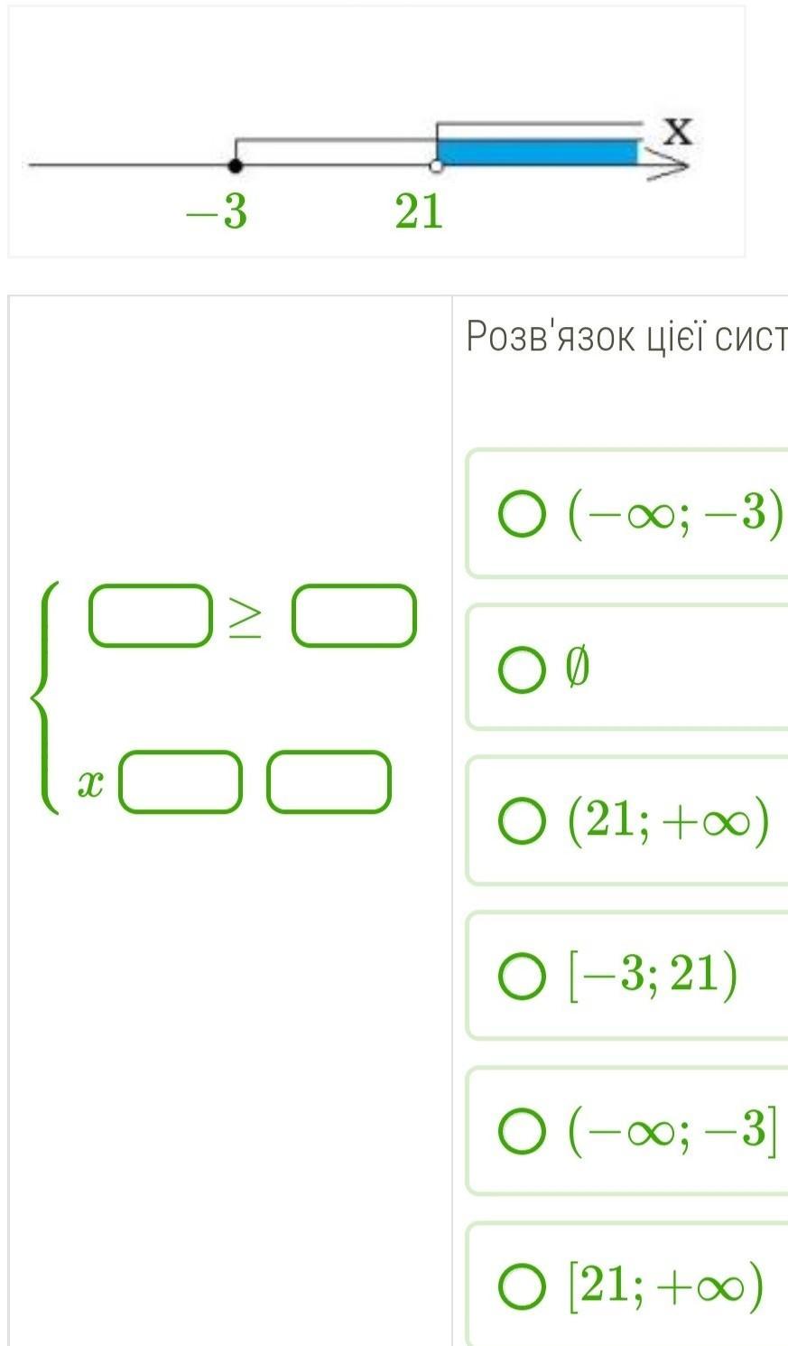 Запиши числові множини з малюнка у вигляді системи лінійних нерівностей.