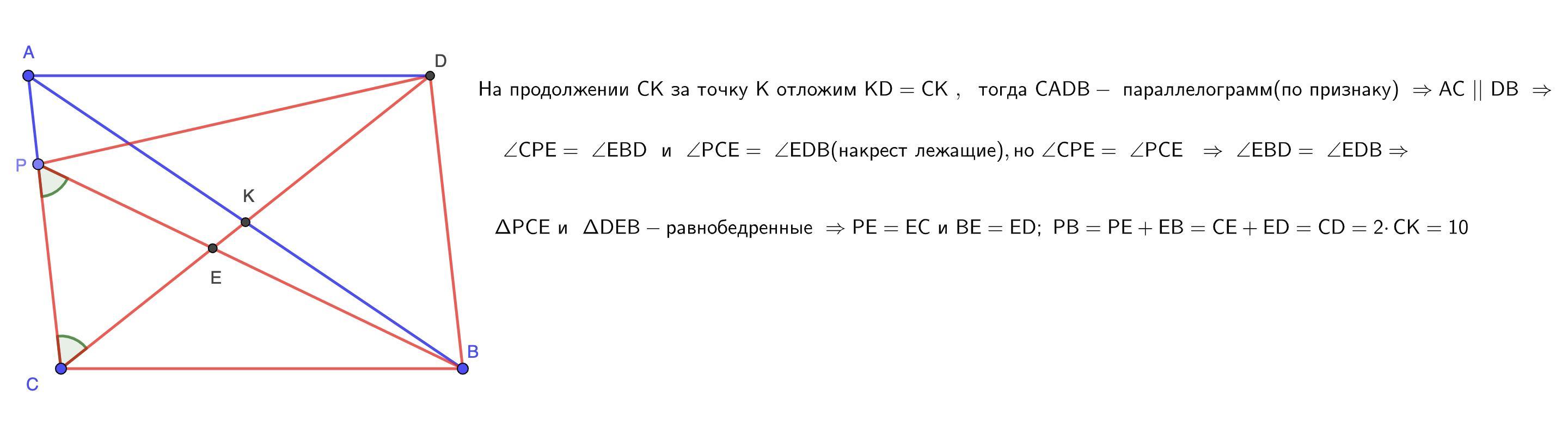 Точка Р расположена так чтобы так что бы кут ВРС = куту АСК