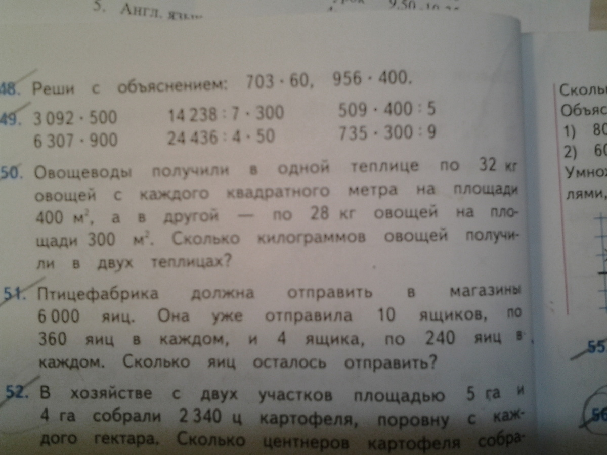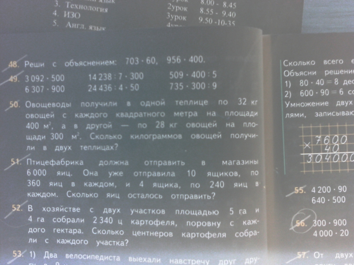 Ответ: 21200 кг овощей получили с 2ух теплиц.