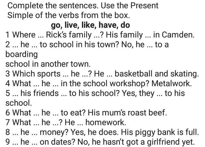 9 Does he go on dates? No, he hasn't got a girlfriend yet.