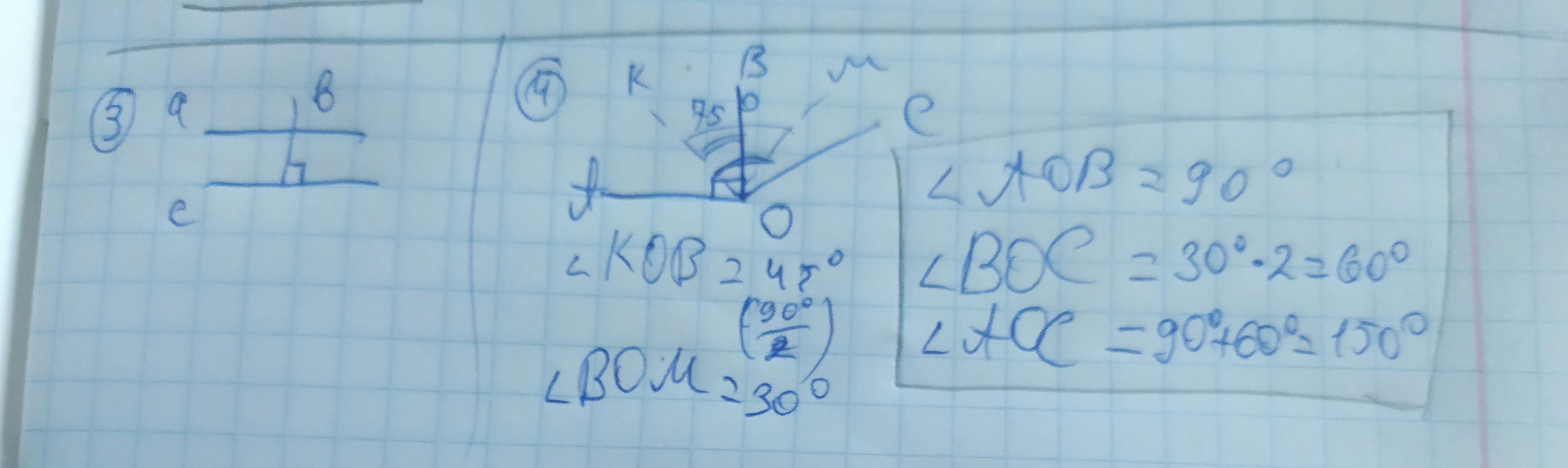 3) <KOM=75*, тоді <KOB=90*/2=45*, а BOM=75*-45*=30*