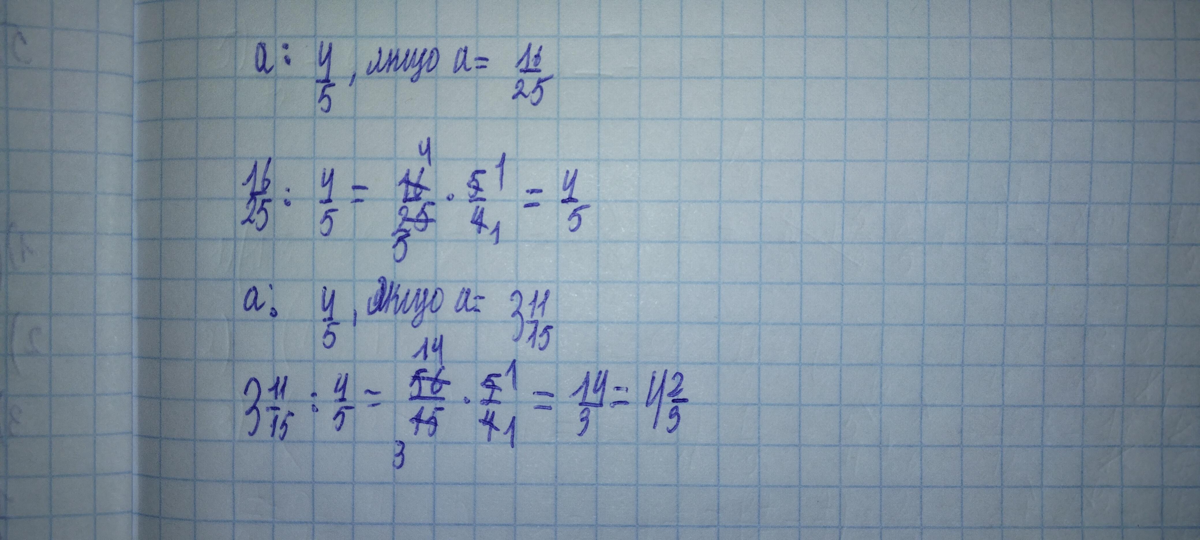 Знайди значення виразу а : 4/5, якщо а 16/25; 3 11/15 пж