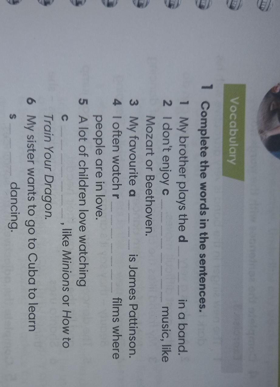 Ответ: 1.drums .2.classical 3.actor 4.romantic 5.cartoons 6.salsa