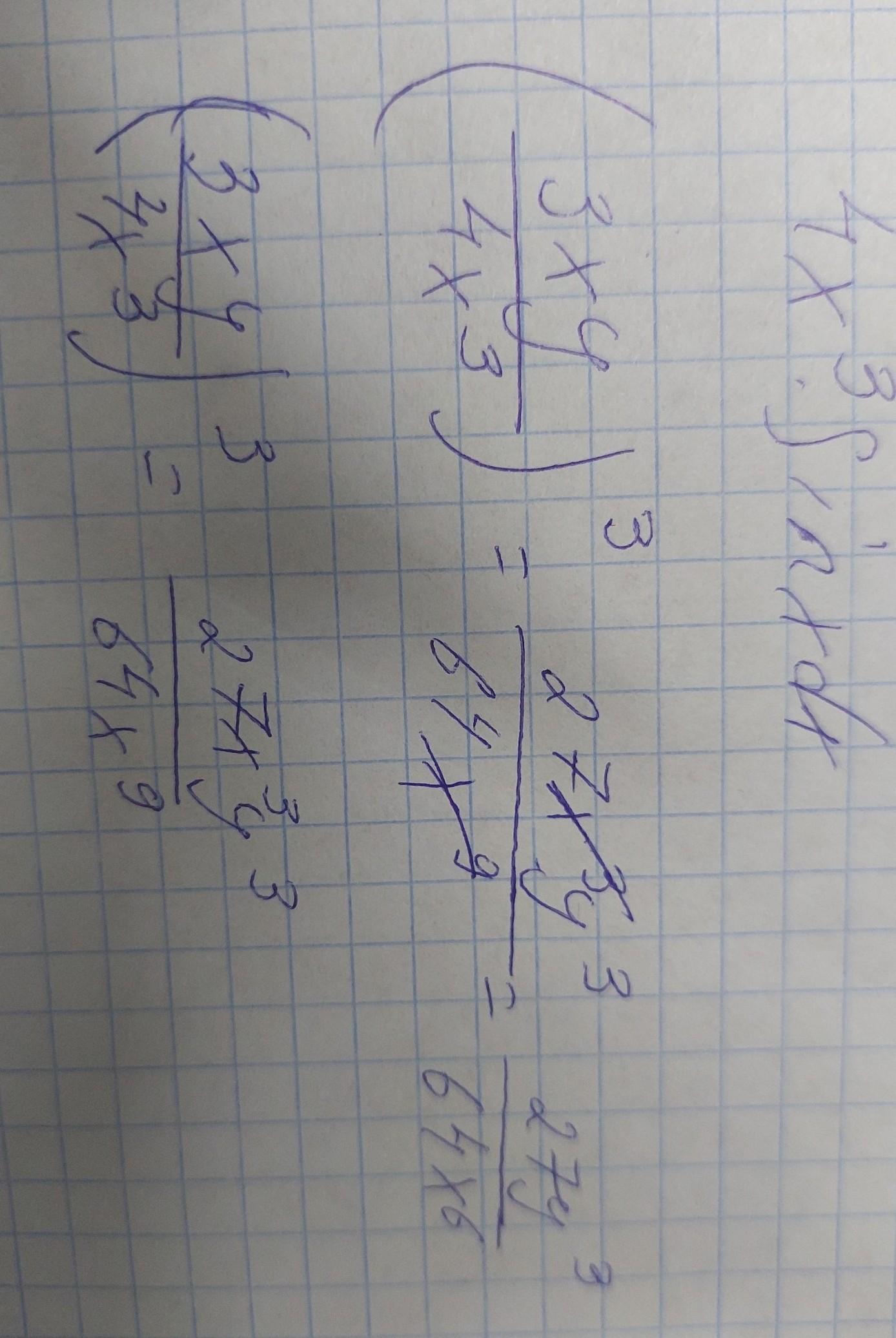 (3xy/4x^3)^3=(27x^3y^3)/(64x^9)