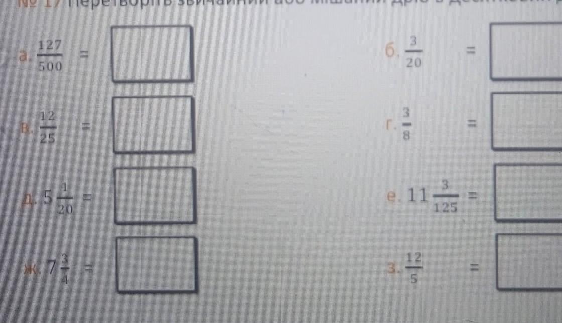 Ne 17 Перетворіть звичайний або мішаний дріб в десятковий дріб.