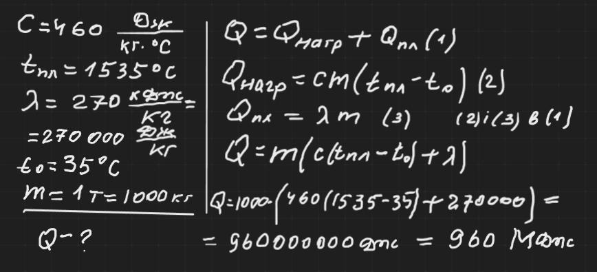 Скільки енергії необхідно для плавлення масою 1 т залізного металобрухту, якщо температура в цеху, де він знаходиться, дорівнює 35°С?