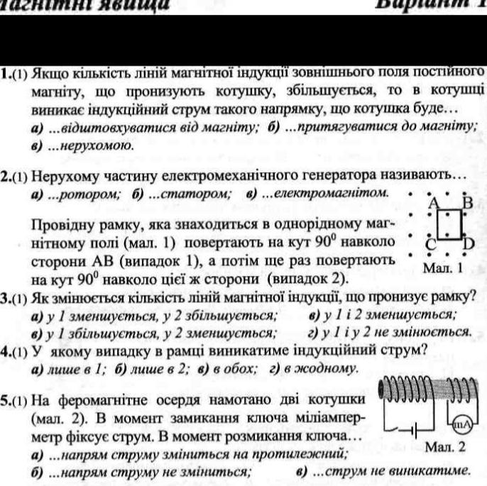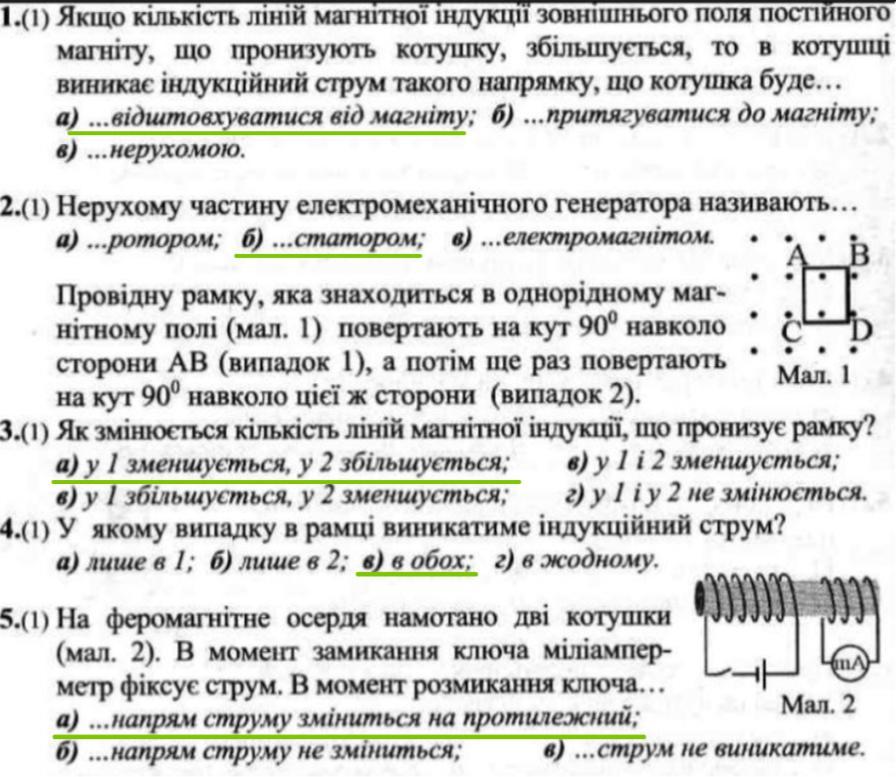 5. У першому випадку число силових ліній, що пронизують котушку з міліамперметром збільшується, а у другому - зменшується. Далі правило Ленца
