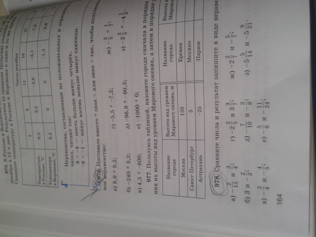 Сравнить: 0 > - 5; 8 > 0; - 7 < 0; - 2 < 3; -7 < 1; 1 > - 10; 1< 8;