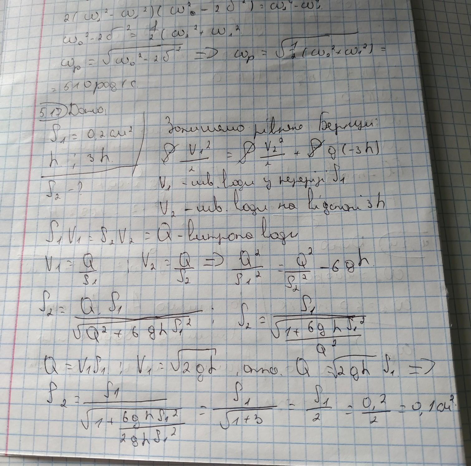 у днi посудини зроблено отвір перерізом S1 = 0,2 см². В посудину налита вода перерізу струмини, що витікае із посідстані 3 від її дна. Силами тертя в до висоти h i Її рівень підтримується сталим. Визначити площу 52 поперечного рідині знехтувати.