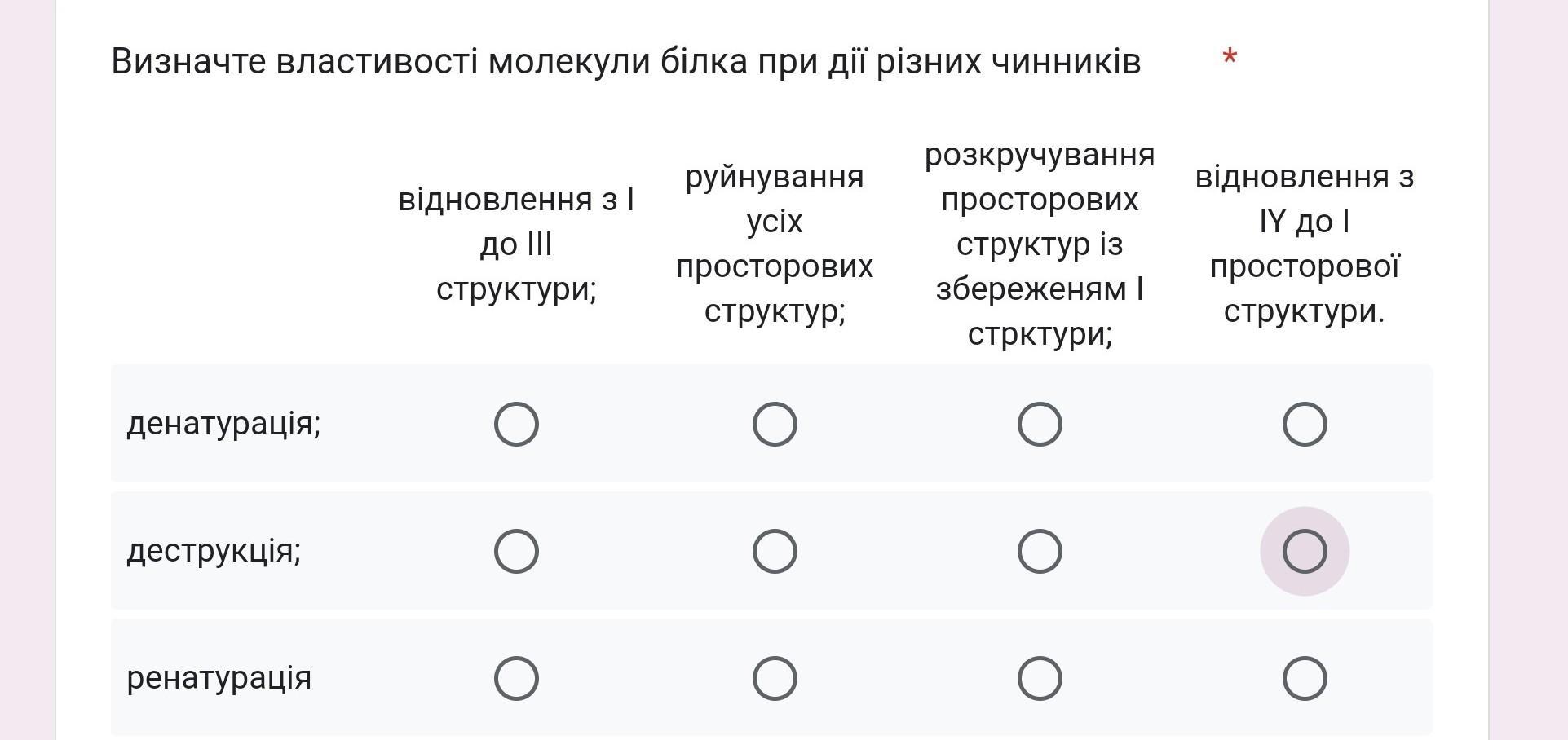 денатурація - розкручування просторових структур із збереженням 1 структури