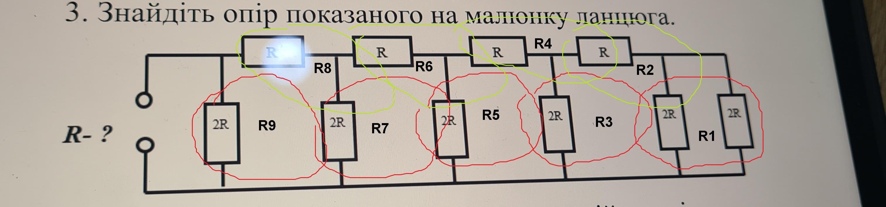 Объяснение: начнем с правой части. Отмеченные красным соединяются параллельно, а зеленым - последовательно. Как видим красные соответствуют нечетным обозначениям, а зеленые соответствуют четным. Поэтому схемы складыванию повторятся: