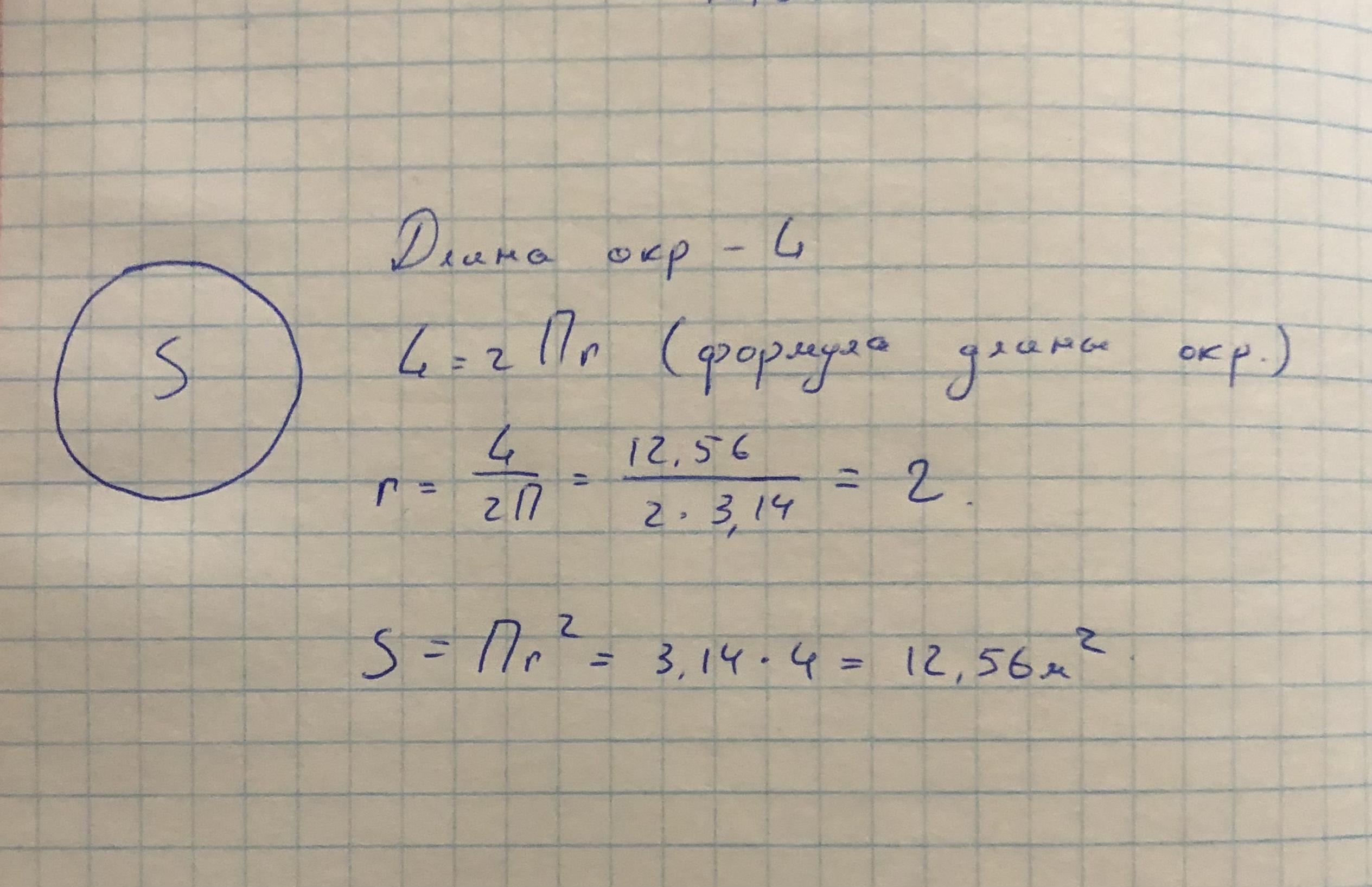 4. Длина окружности цветочной клумбы, имеющей форму круга, равна 12,56м. Вычислите площадь цветочной клумбы. быстрей