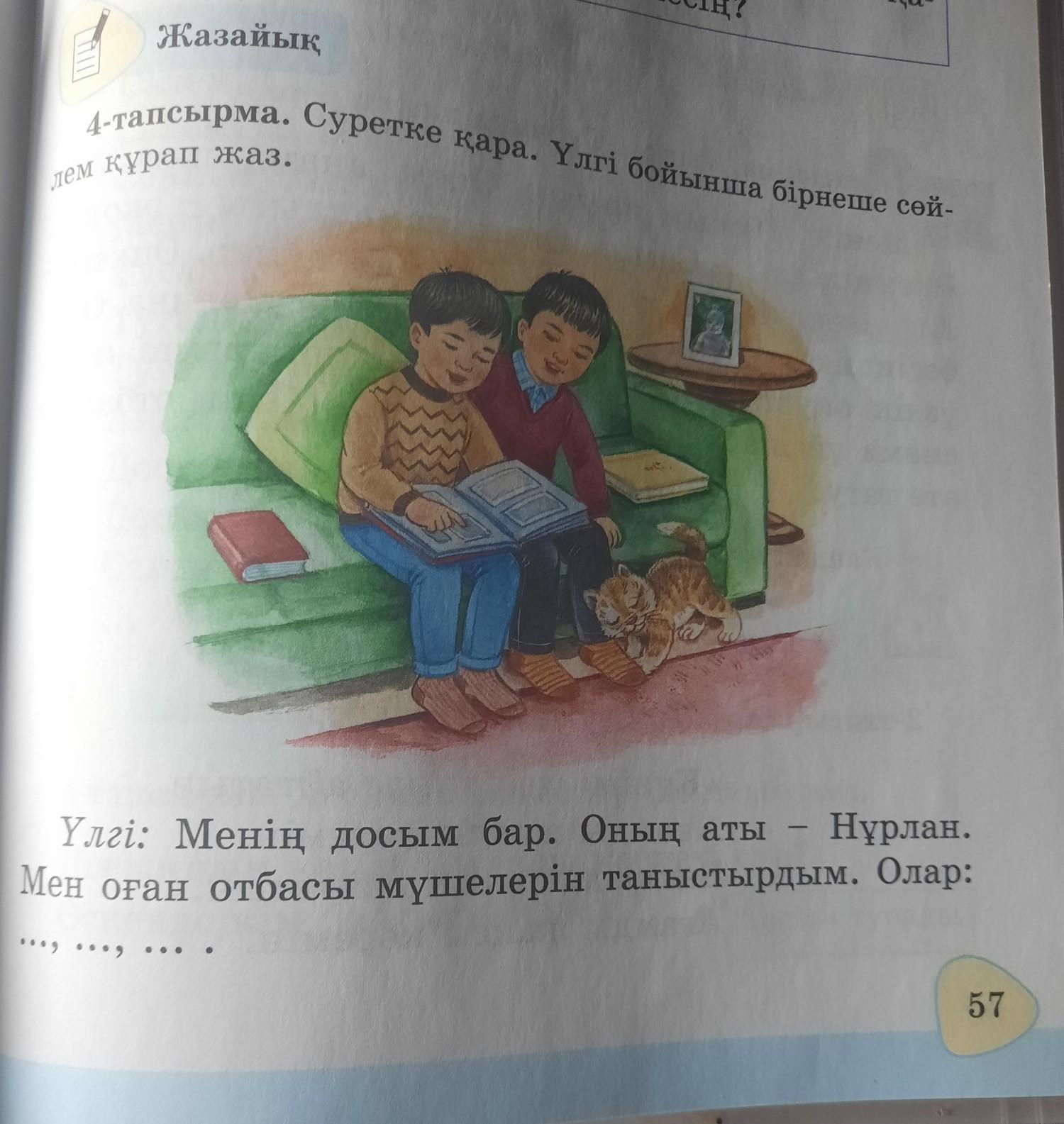 Менің досым бар. Оның есімі- Аслан. Мен оған отбасы мүшелерін таныстырдым. Олар: Әкем, Анам, Әпкем бар. Олар менің досымды қуана қарсы алды. Бәріміз бірге ас іштік. Досымды өзімнің ағам ретінде санаймын. Ол маған барлық сабақтардын қолұшын салып көмектеседі. Қандай досын болсада қадірлеу керек.