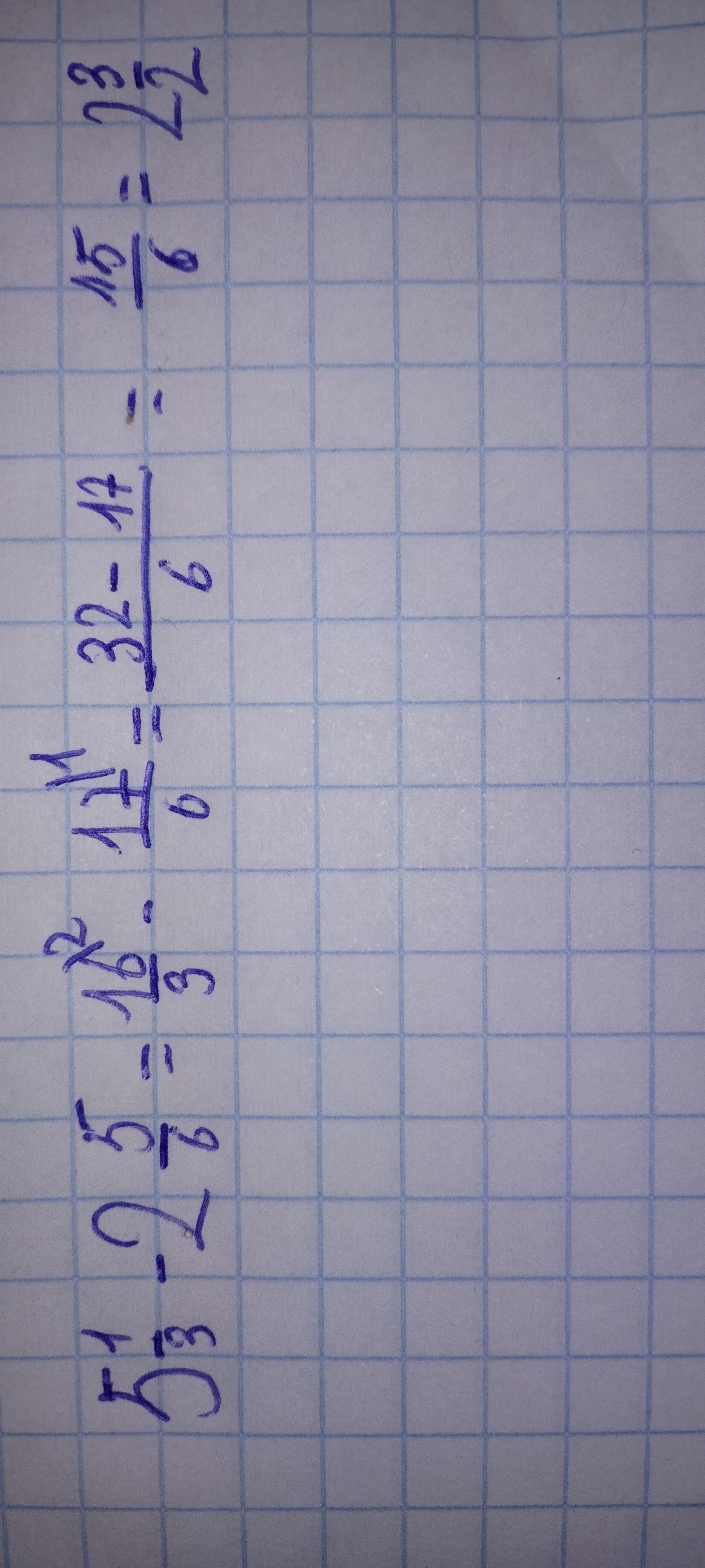 преобразовать выражения 5 ⅓ - 2 ⅚ в неправильную дробь : 16/3 - 17/6