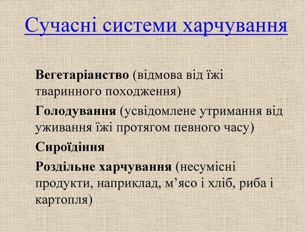 Системи харчування — це системи теоретичних знань і практичних методів, які містять певні правила вибору та вживання їжі людиною. Ці правила враховують такі чинники, як хімічний склад, фізичні властивості, кулінарна обробка продуктів, час та інтервали прийому їжі тощо.