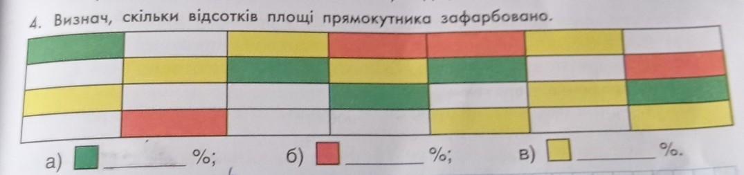 визнач, скільки відсотків площі прямокутника зафарбовано.