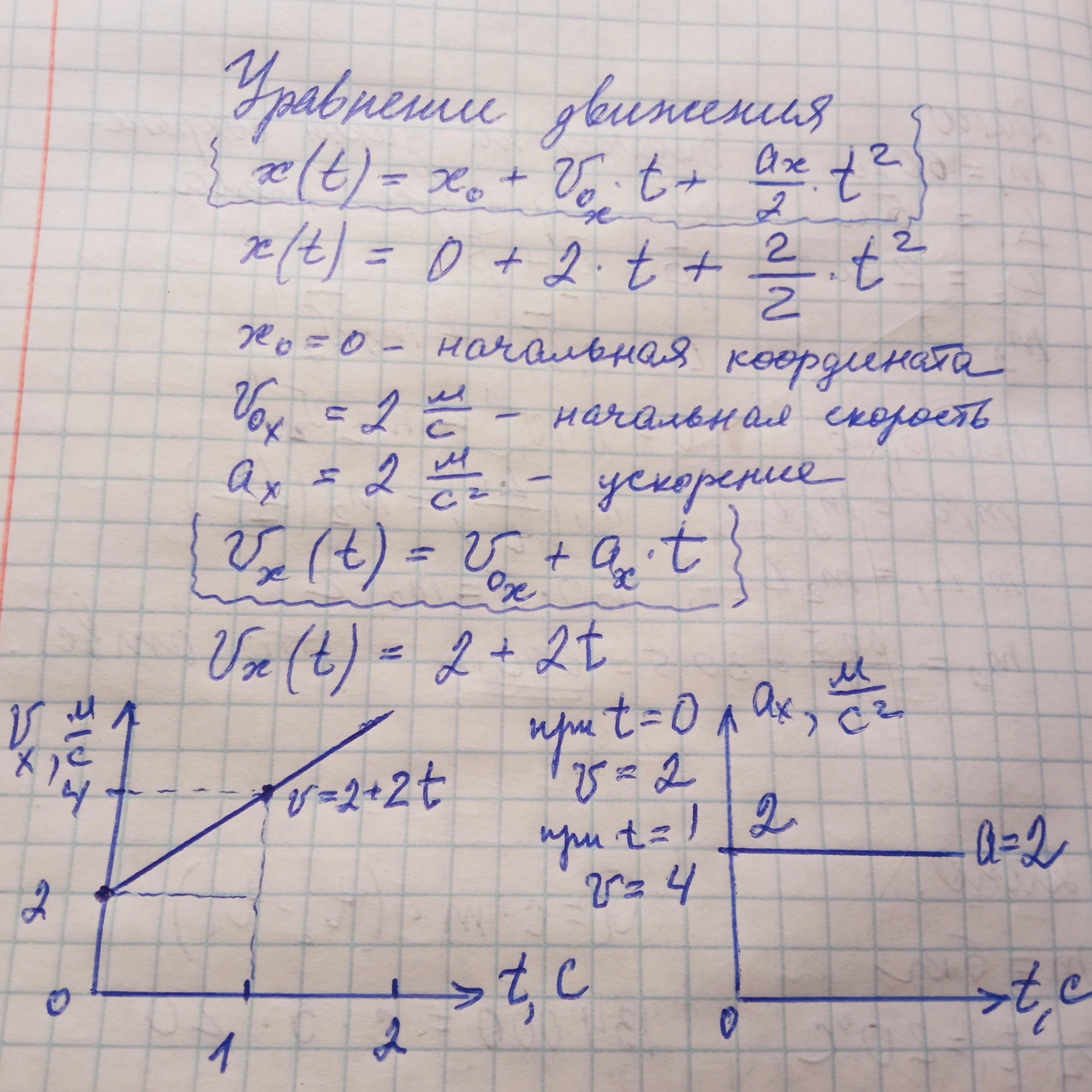 Рух матеріальноï точки задано рiвнянням х= 2t + t² . Написати залежність