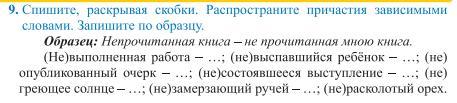 Спишите, раскрывая скобки. Распространите причастия зависимыми словами. Запишите по образцу.