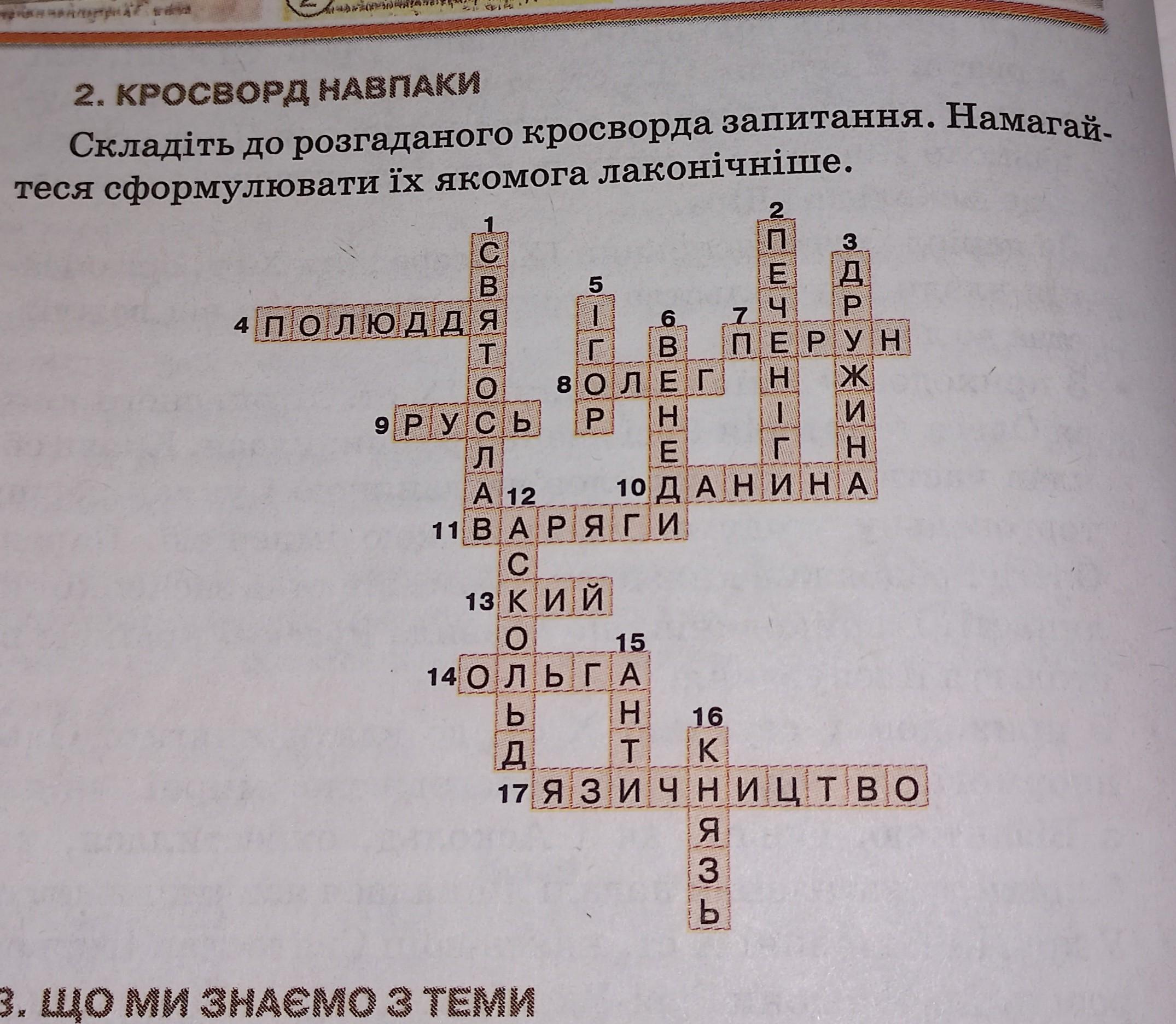 Складіть до розгаданого кросворда запитання. Намагайтеся сформулювати їх якомога лаконічніше.