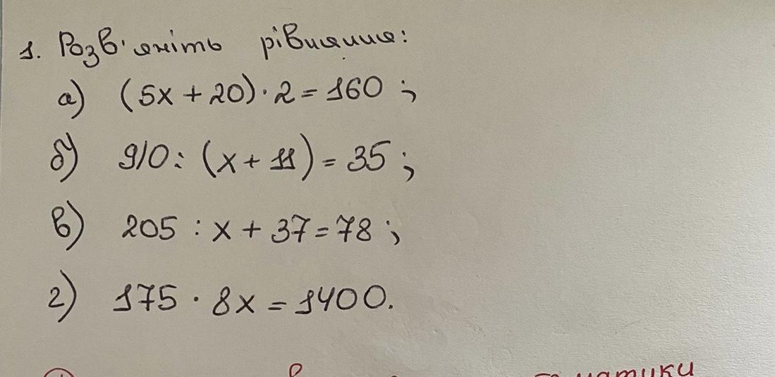 А) (5x+20)*2=160 Б) 910:(х+11)=35