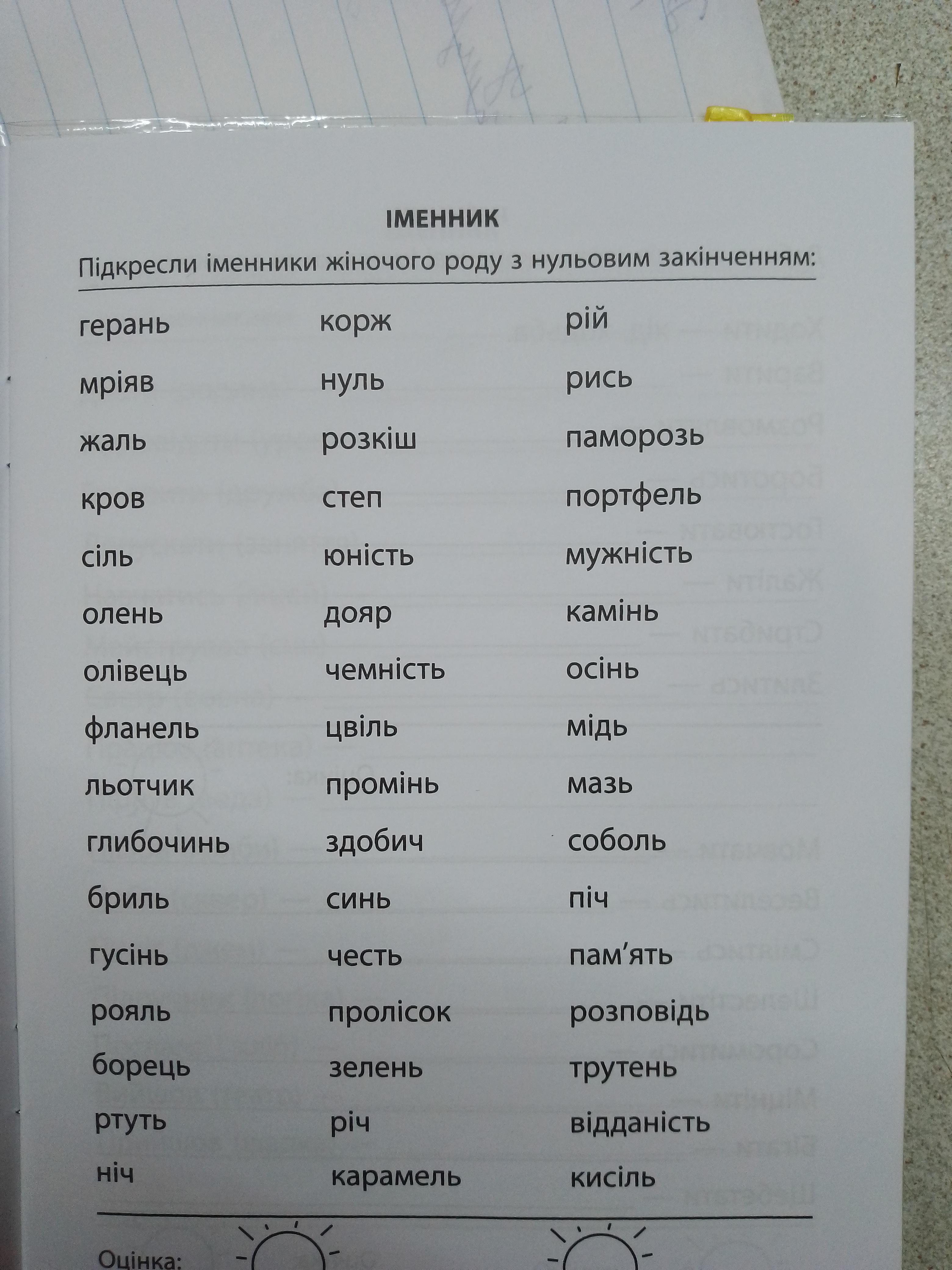 юність,чемність,цвіль,здобич,синь, честь,зелень,річ, карамель,паморозь, мужність, осінь,мідь,мазь,піч,пам'ять,розповідь, відданість