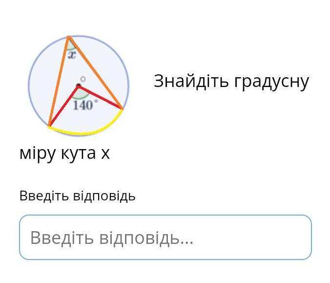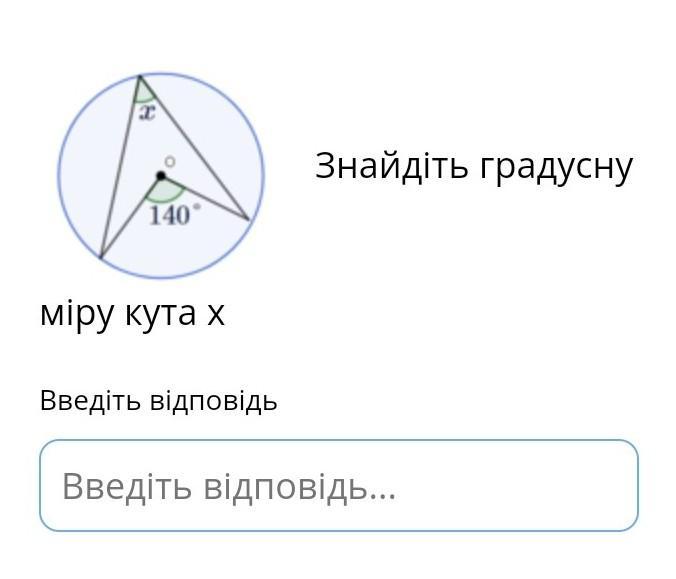 Центральный угол(140 градусов) и вписанный(Х) опираются на одну дугу,в таком случае вписанный угол в два раза меньше центрального