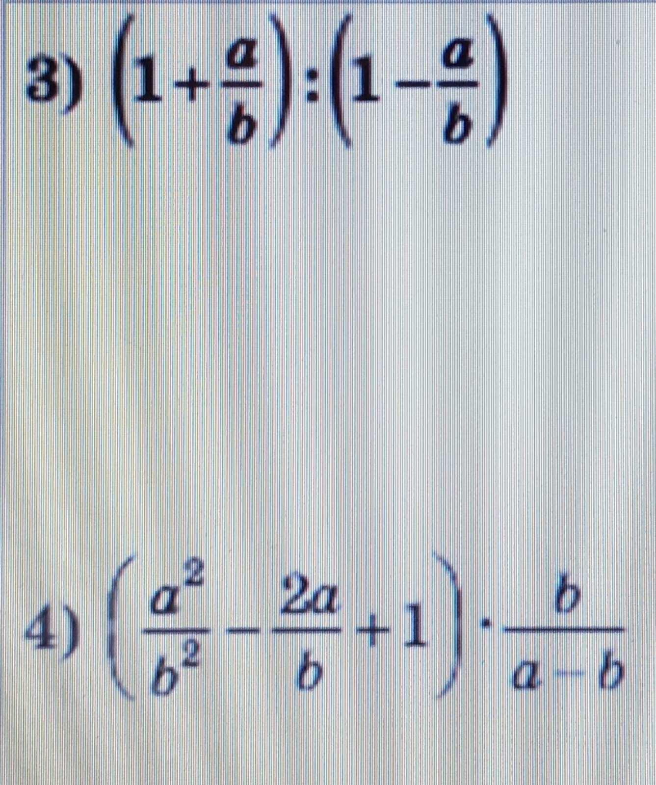 3) (1+a/b):(1-a/b)=(b+a)/b : (b-a)/b = (b+a)/b * b/(b-a)=(b+a)/(b-a).