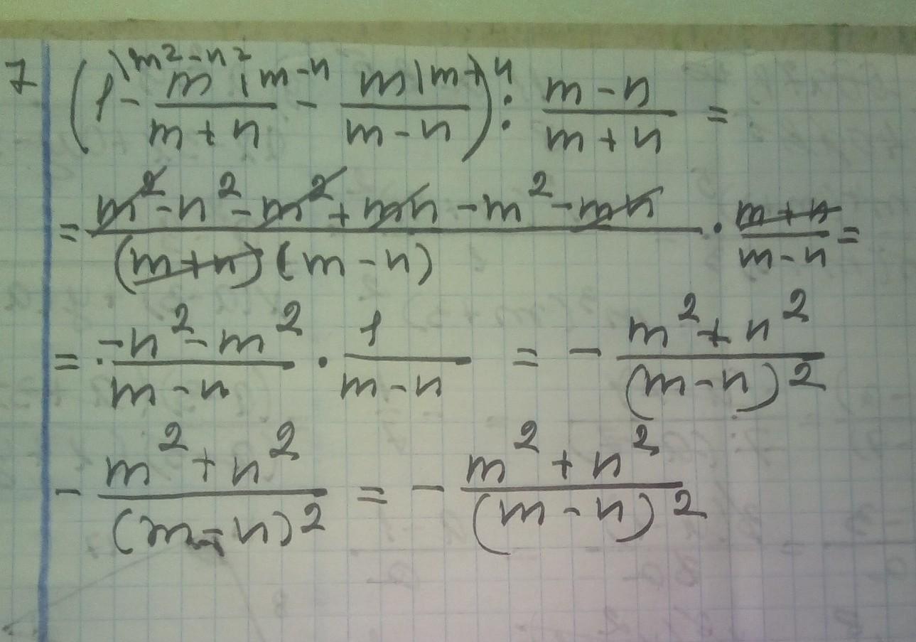 (1- m/m+n - m/m-n):m-n/m+n=-m²+n²/(m-n)²