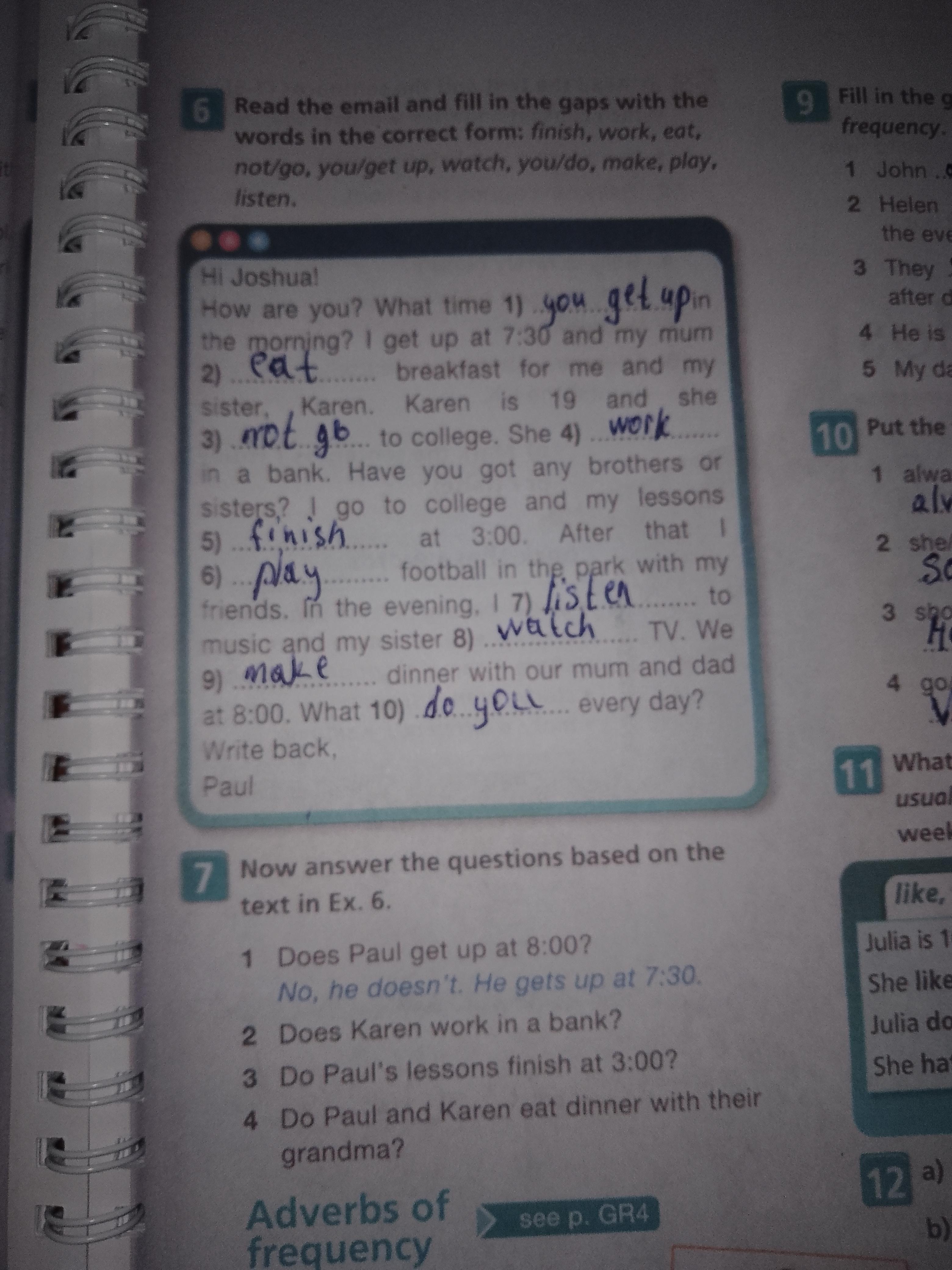 3 No, they don't. They don't eat dinner with their grandna. А ще в тебе помилки в тексті в не правильній формі написано.