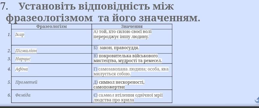 1-є, 2-а, 3-г, 4-в, 5-д, 6-б