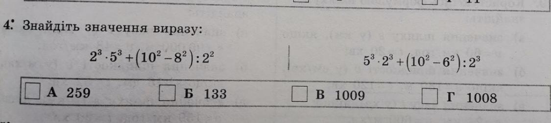 5³•2³+(10²-6²):2³ = 125 • 8 + (100-36):8 = 1000 + 64 : 8 = 1000 + 8 = 1008