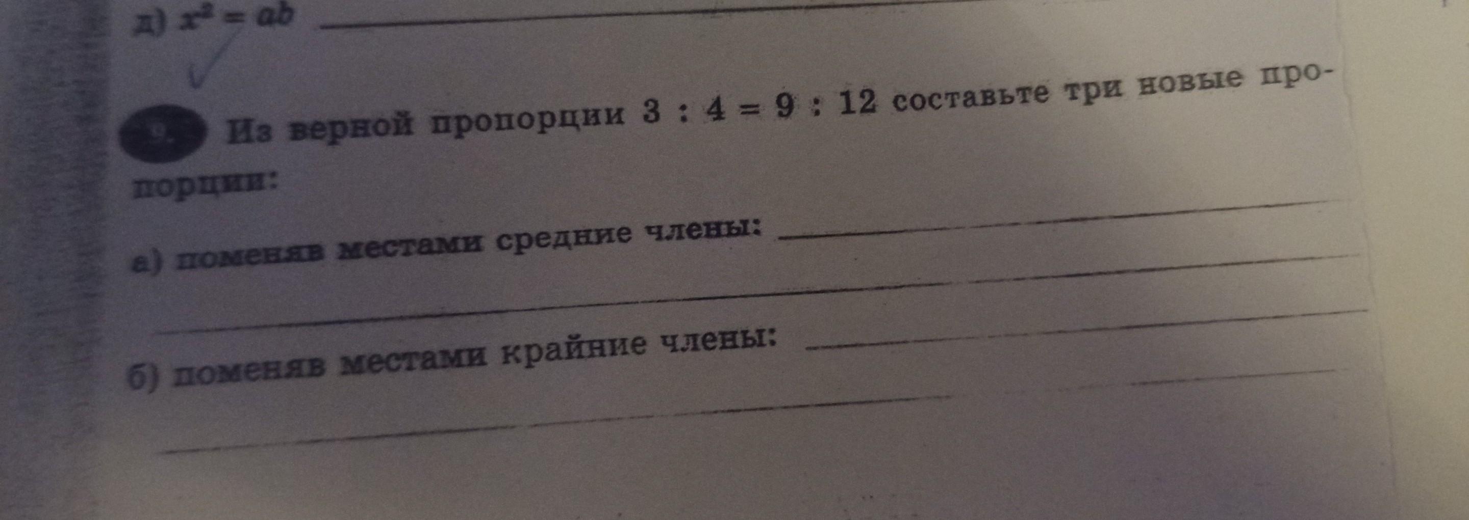 12 : 9 = 4 : 3. Её можно вписать и в строку а) и в строку б) на Ваш выбор.