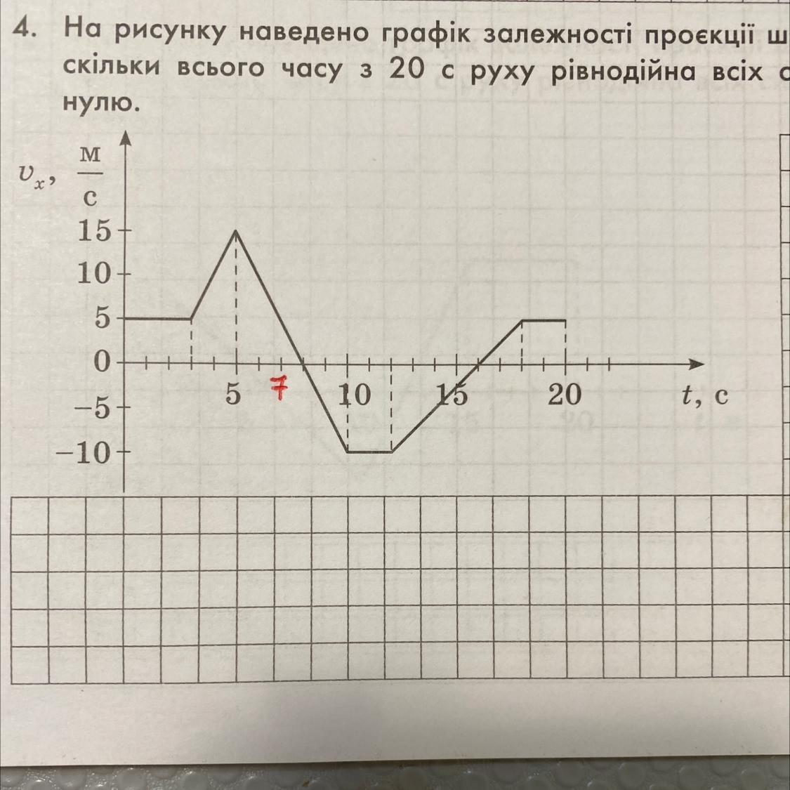 4. На рисунку наведено графік залежності проєкції швидкості руху тіла від часу. Визнач,