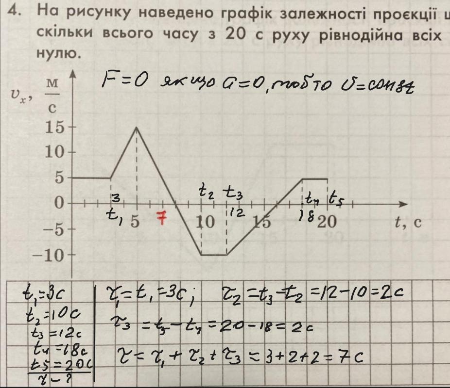 скільки всього часу з 20 с руху рівнодійна всіх сил, що діяли на тіло, дорівнювала