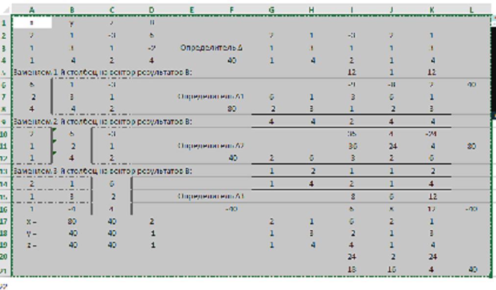 1 -2 1 Определитель Δ2 -36 -24 -4 80