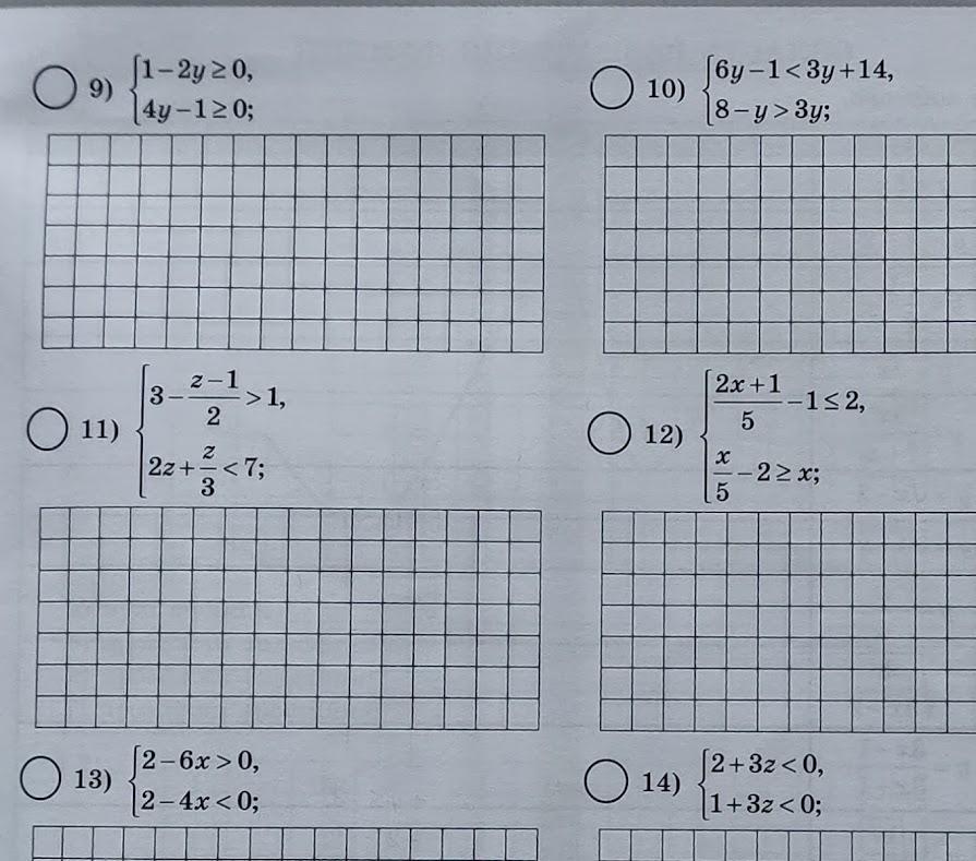10) 6y-1<3y+14 ⇒ 6y-3y<14+1 ⇒ y<15/3 ⇒ y<5 ⇒ y∈(-∞; 5)