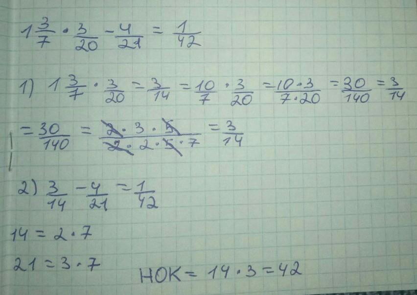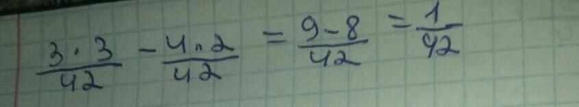 2) 3/14 - 4/21 = 9/42 - 8/42 = 1/42