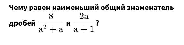 Наименьший общий знаменатель двух дробей a*(a+1)