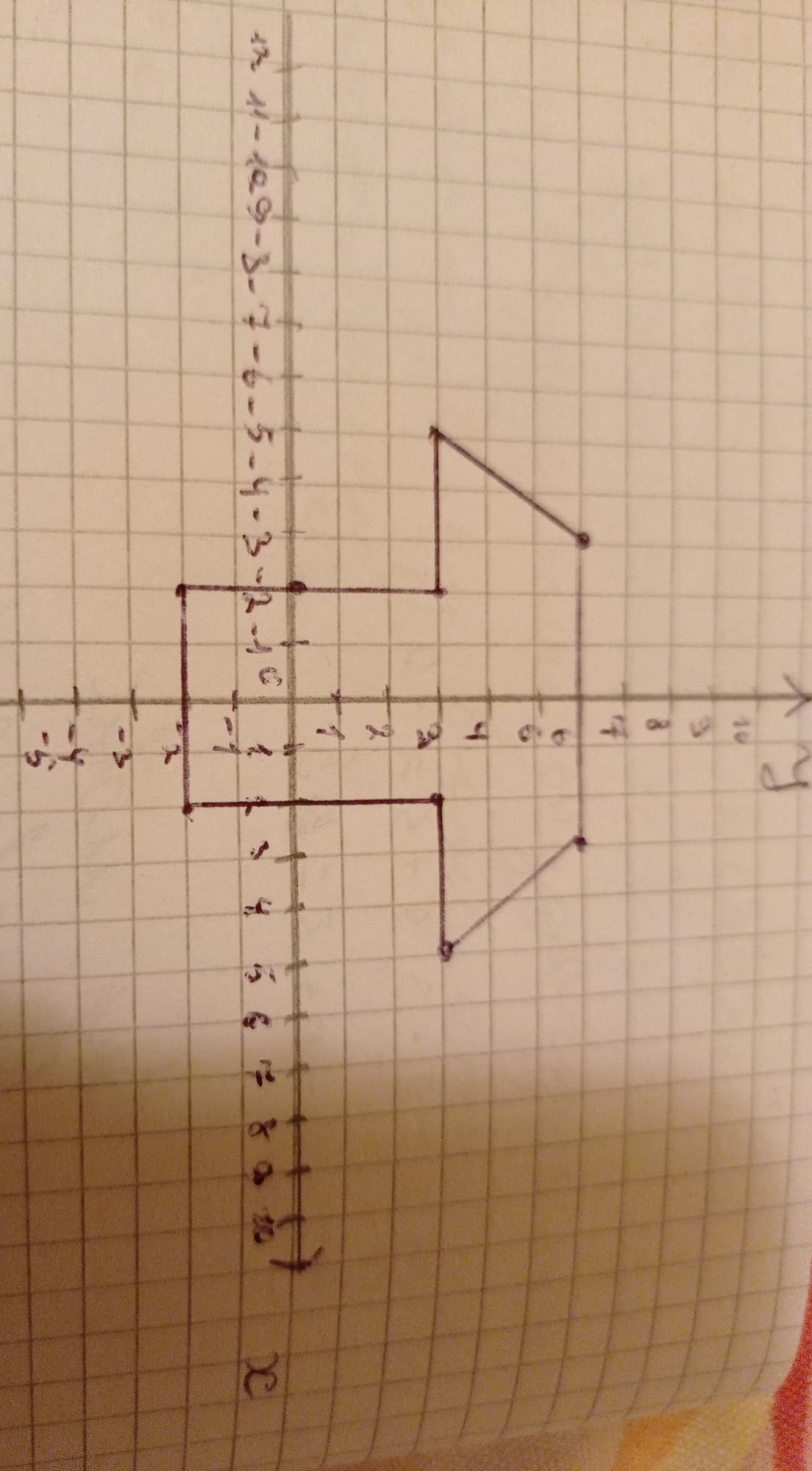 побудуйте на координатній площині точки за їх координатами з'єднай точки в наведеному порядку (-3,6),(-5,3),(-2,3),(-2,0),(-2,-2),(2,-2),(2,0),(2,3),(5,3),(3,6),(-3,6)