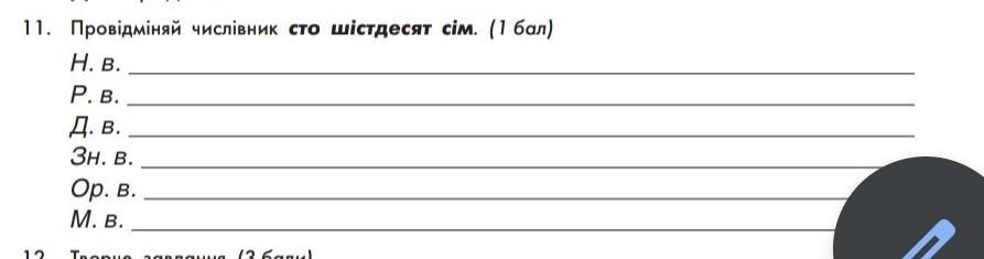 11. Провiдмiняй числівник сто шістдесят сiм. (1 бал) Н. В. P.B. Д. в. Зн. в. Op. B. M.B.