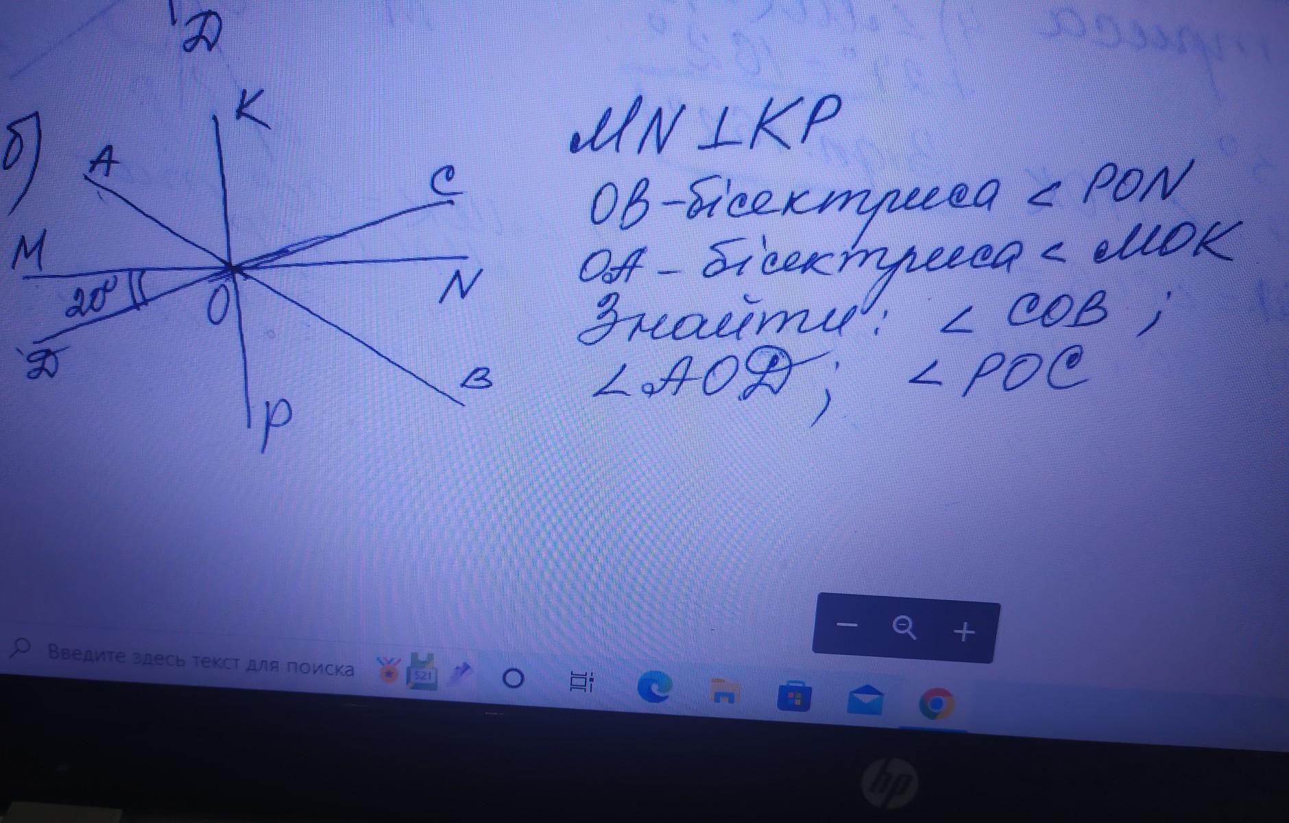 ∠AOD=45+20=65°; ∠POC=90+20=110°