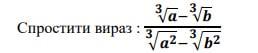Пошаговое объяснение:1) (корінь третього степіня з а у квадраті - корінь третього степіня з аб + корінь третього степіня з б у квадраті)/а+б