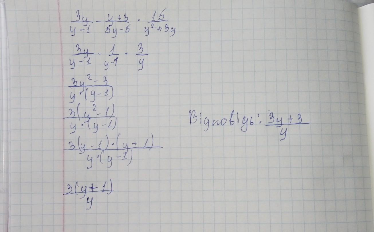 3у/(у-1)-(у+3)•15/5(у-1)•у(у+3)=3у/(у-1)-3/у(у-1)=