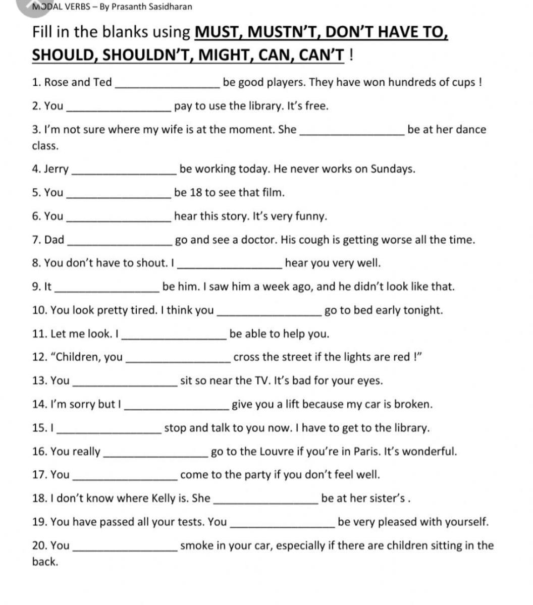 Пояснення: В 16 можна сказати must i should. В 20 так само, але з shouldn't/mustn't