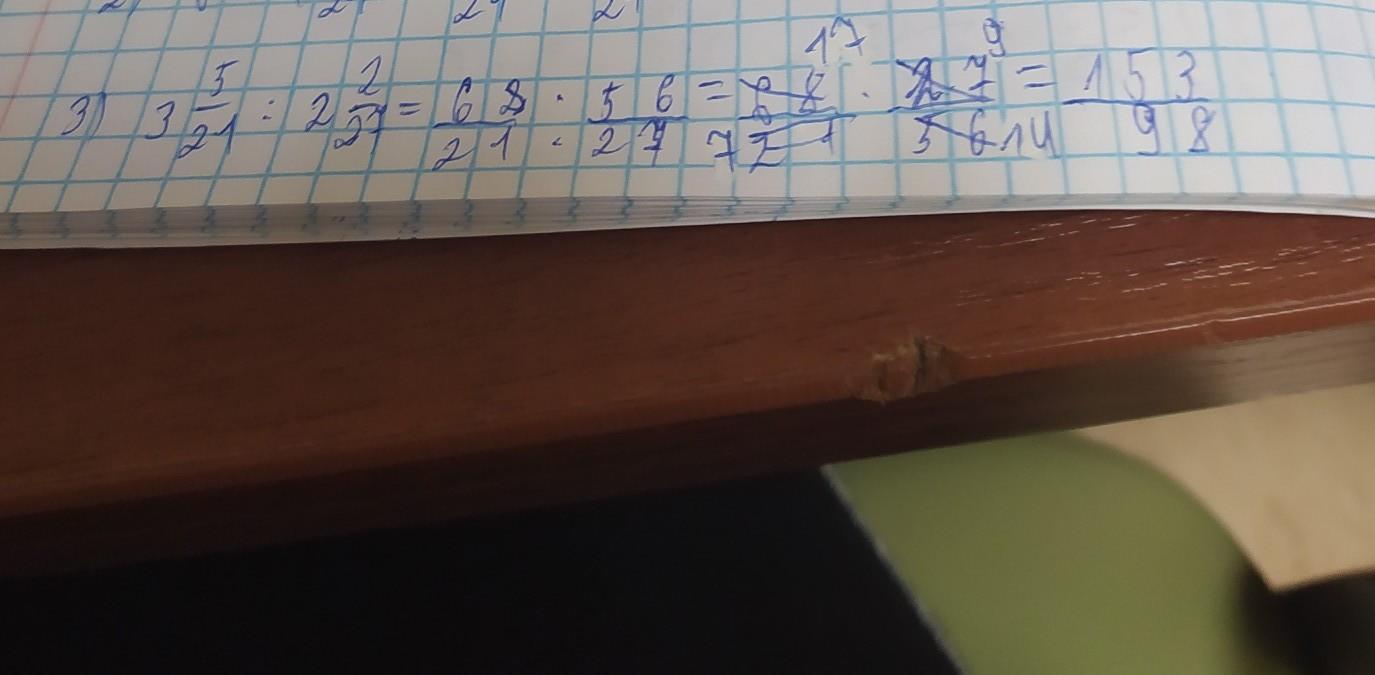 3 5/21 : 2 2/27 = 68/21 : 56/27 = 68/21 * 27/56 =